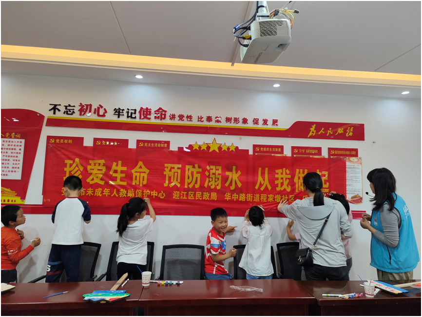 为了牢固树立“安全第一,预防为主”的观念,社工带领孩子们团队合作发挥想象力制作防溺水警示牌,随后组织大家前往莲湖公园巡湖,对在水边玩耍戏水的市民进行安全劝阻,耐心向市民宣传讲解防溺水知识,提高市民的安全意识。