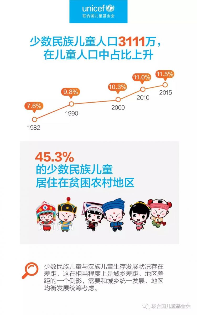 基于对2015年全国1%人口抽样调查及历次人口普查和调查数据中关于中国儿童人口的描述分析,国家统计局、联合国儿童基金会、联合国人口基金共同发布了《2015年中国儿童人口状况——事实与数据》(文末附中英全文下载二维码)。这其中包括了哪些数据?哪些儿童人口特征?我们一起了解一下: